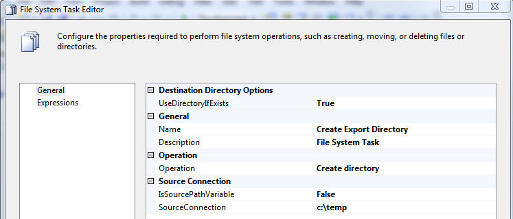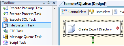 Using a file-system task to create a folder.