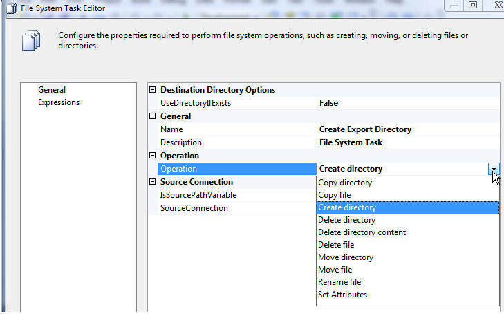 First, drag a File System task object unto the designer and rename it according to its purpose.