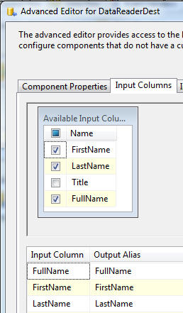 Drag a DataReader destination unto the designer and connect the Derived Column’s green line to it.