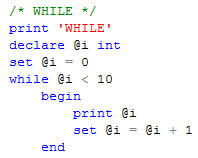 Looping: The WHILE keyword provides the ability to execute deterministic actions for a prescribed number of iterations.