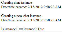 Also, I record the date/time of the first object instantiation for debugging purposes and perform a test to see if instance1 and instance2 are the same object.