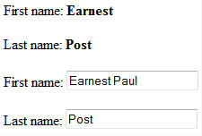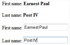 I’ll begin with the HTML from the last article where I have the first name field bound.