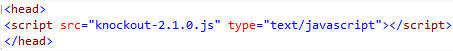 To enable knockout.js functionality I must add a “script” tag within the “head” page.