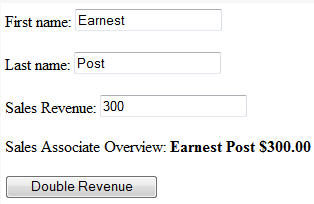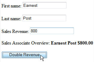 Now my page contains a button which lets me double the revenue entered when I click it.