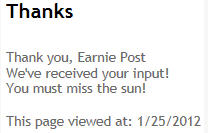 Now when I complete the form and receive the confirmation message, I’m greeted with a message about the sun and the current date.