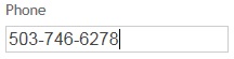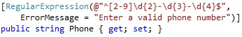 Similarly, I am going to implement another regular expression for my Phone field to ensure what the user enters in a valid format.
