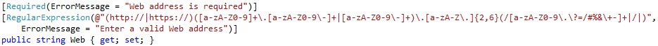 Finally, I am going to protect my Web Address field to that users won’t enter invalid URLs by adding a regular expression to its field in the model.