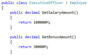 As you can see, each employee type’s method for retrieving payroll which presents a challenge to the CompanyPayroll class in determining which type each object represents as well as which behavior should be used for each object.