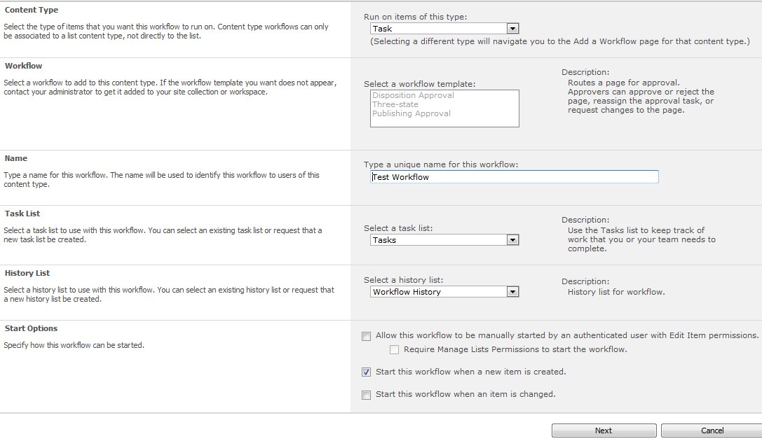 Here’s an example workflow I already configure to begin upon creation of a new item.