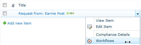 From the “List and Libraries” property page, I’ll select “New” in the “Workflows” section to create a new workflow.