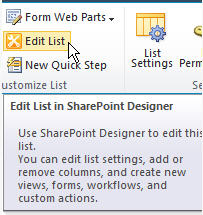 First, I’ll select “Edit List” from the “List” tab to create a new workflow from this list.