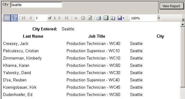 When I execute the query, it prompted me with a value for the City parameter it was expected, so I entered Seattle.