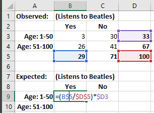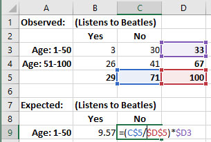 For example, I want to reuse this formula to calculate the Expected “Yes” value for the “Age: 1-50” for the “No” value.