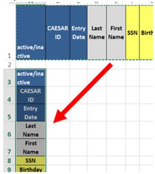 If you have ever worked with a long list of column headers – too long so it displays off the screen to the right, you know how arduous such a list can be to work with – use Transpose.
