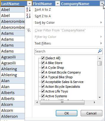 For this example, I’ll begin with a simple customers tables from AdventureWorks db.