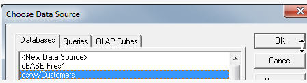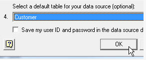 Also, you may select a “default table” for the data source. the data source is now listed, click “OK.”