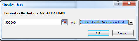 Now I wish to have Revenue values over $300k stand out so I’ll highlight all the values and select Conditional Formatting.