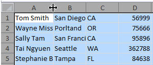 You’ll notice some of the values are truncated, so I’ll click the top-left cell to select all cells, then double-click the dividing line between any two column headers. Now, each column’s value has enough space.