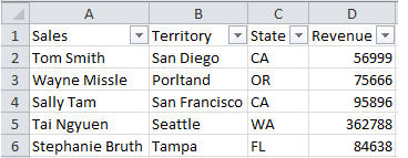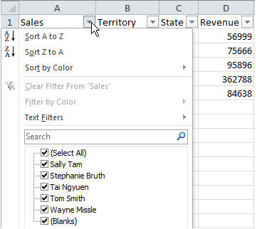 With filters applied, I can specify which rows I want displayed.