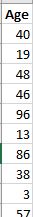 Excel scanned through all 200 ages to determine only two numbers repeated – 19 and 48.