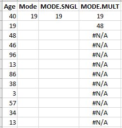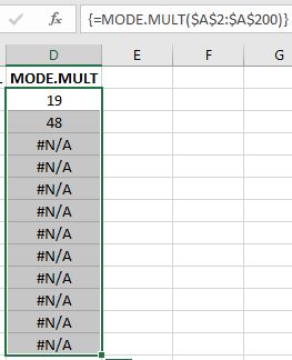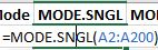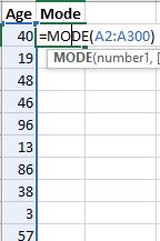 Now, I’ll use the MODE() function to determine out of all 200 ages, which is the most common.