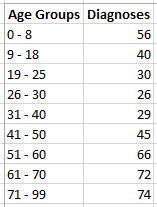 I’ll begin with a data set which describes age groups and frequency of cancer diagnoses.