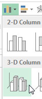 First, I’ll highlight both columns of data and from the Insert menu, click the Column icon, then the column chart I want.
