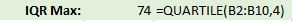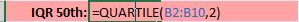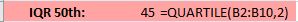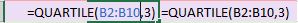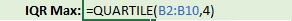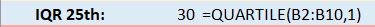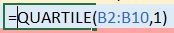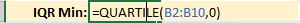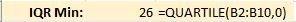 First, I’ll use the QUARTILE() function to display the data set’s minimum value.
