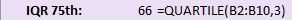 As you see, the median for the 75th quartile is 66. This is the same value for the media of the lower half of the data set.