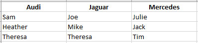 As you can see, one person (Theresa) chose both Audi and Jaguar. All other respondents only selection on make of car.