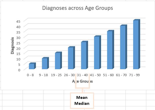 Conversely, when a data set’s values reside further to the right of its mean, visually the distribution will appear to have a tail stretching to the right, creating a “right-skewed” distribution.