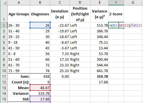 With my new Z-Score column, I now have a value which tells how many standard deviations from the mean (negative-left, positive-right) each value resides from the mean.
