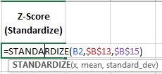 Also, Excel provides the Standardize() function to determine z-scores.
