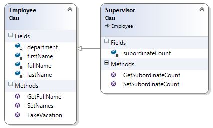 As you can see, the Employee class contains data and behaviors common to all types of employees, which the Supervisor class reuses in its objects.