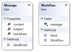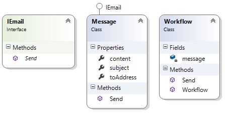 Instead of the Workflow class containing a Message object as a member, I’ll decouple a portion of the behavior to an interface, which the Message class will inherit.