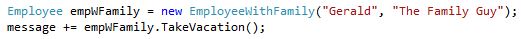 Note: To add new functionality to employee objects (or in the future), I didn’t and won’t need to change the existing abstract (template) Employee class, I simply create new class to derive the abstract class’ behavior, then instantiate objects of that new derived type, using the abstract class to define the variable. Also, I won’t have to change existing code using previous classes to support changes.