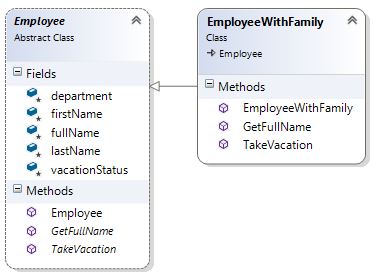 Note: To add new functionality to employee objects (or in the future), I didn’t and won’t need to change the existing abstract (template) Employee class, I simply create new class to derive the abstract class’ behavior, then instantiate objects of that new derived type, using the abstract class to define the variable. Also, I won’t have to change existing code using previous classes to support changes.