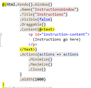 In this article I’ll demonstrate how to use Telerik’s Window control to dynamically display instructions in a popup window.