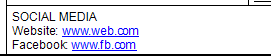 In this expression, I simply repeat an IIf() function for each social media link, to determine if a link is returned (length>=1), then display the label (“Website: “), then the link, or if no link is returned, display blank (nothing).
