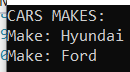 In the section statement, I perform a select on the car objects’ Make property, then Distinct() to limit the result set to a unique list of car makes.