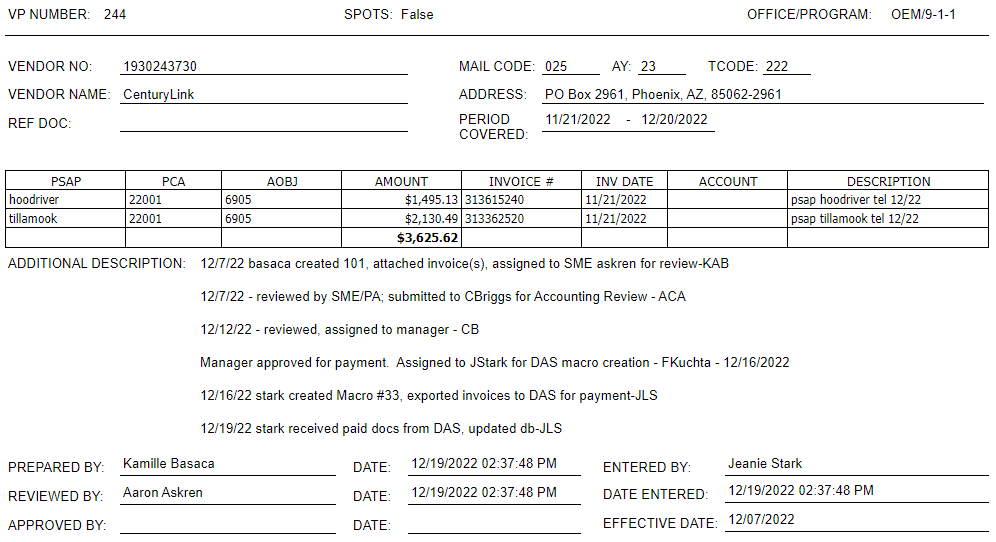 Note the precision positioning of many fields, dynamic tables which grow/shrink as needed while conserving vertical space, and freeform data to display log entries with dates and comments.